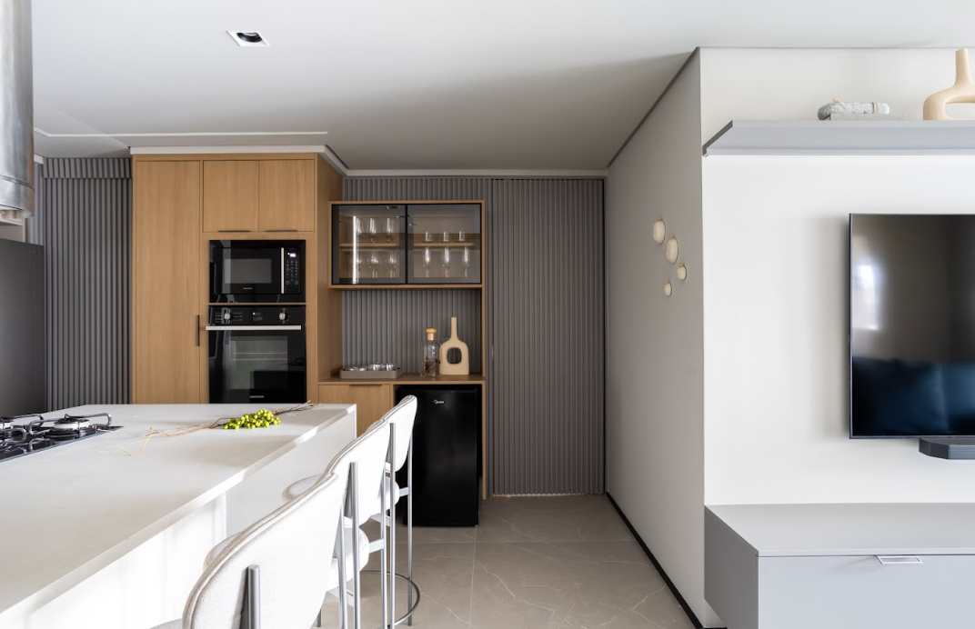 A integração de ambientes é uma característica marcante do estilo moderno. A remoção de paredes divisórias e o uso de iluminação recessiva ajudam a ampliar visualmente o espaço, criando uma sensação de fluidez.